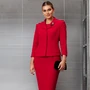 Двухпредметный костюм от бренда Мода-Юрс состоит из жакета и платья. Жакет полуприлегающего силуэта, отрезной по линии талии, спереди со шлицами. Спинка с талиевыми вытачками и средним швом. Рукав втачной, двухшовный. Застежка центральная на петли-пуговицы. Жакет на подкладке. Платье полуприлегающего силуэта, отрезное по линии талии. Верхняя часть платья по переду с рельефами. Нижняя часть платья А-силуэта. Спинка со средним швом и талиевыми вытачками. Застежка на тесьму-молнию в среднем шве. Рукав втачной, одношовный. Платье дополнено поясом, что позволяет регулировать ширину по линии талии.