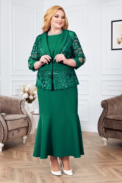 Комплект женский, состоящий из жакета и платья, выполненных из сочетания плательно- костюмной ткани гипюра.