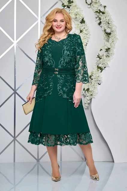 Платье женское, прилегающего силуэта, покроя “годе” из слегка жатого шифона, на подкладке из дышащей, приятной на ощупь и достаточно эластичной ткани. Длина платья по среднему шву спинки 115,0 см. Рельефы переда выходят из проймы, проходят через центр груди вниз. Рельефы спинки выходят из проймы вниз, в среднем шве обработана застёжка на потайную тесьму молнию. Горловина углублённая спереди, обтачная, фигурная, украшена пришивными аппликациями. Рукава втачные, одношовные, длиной 21,0 см. К низу подкладки пришит волан со сборкой из гипюра. Изделия с плечевыми накладками.