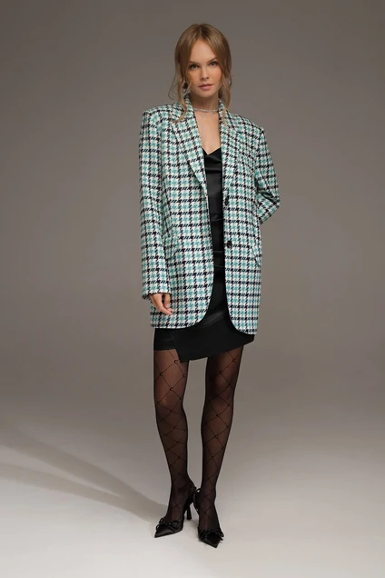 Длина жакета по спинке около 75/77 см, длина рукава около 61 см; длина платья по боковому шву около 60/64 см