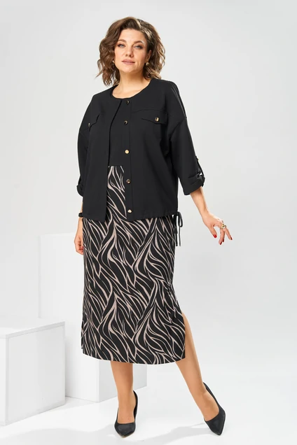 Костюм с платьем 3-2713 черный + волна Romanovich style