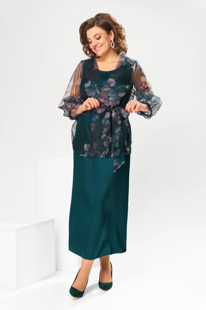 Костюм с платьем 3-2789 изумруд Romanovich style