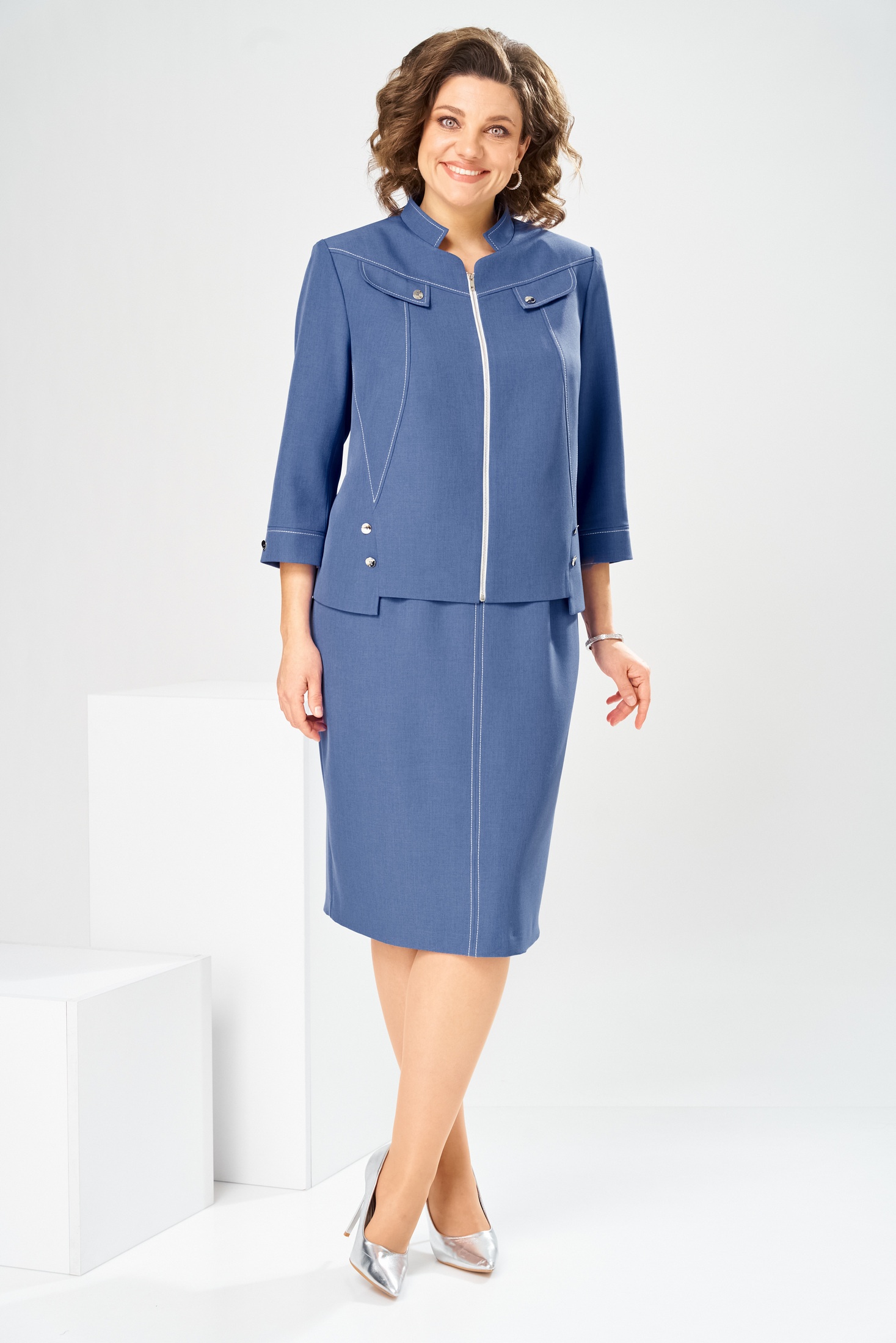 Костюм с платьем 3-2914 джинс Romanovich style — стильное решение для вашего гардероба. Коллекция бренда Romanovich style предлагает комплект для повседневной носки, состоящий из жакета и платья. Жакет полу прилегающего силуэта с длиной до бёдер, дополняется фигурным низом и центральной застёжкой на молнию, а также декоративными элементами, такими как притачные планки и пуговицы. Длина спинки жакета составляет 59 см, а длина рукава 48 см. Платье длиной за колено, завершено элегантной шлицей и потайной молнией на спинке. Верх изделия выполнен из 70% полиэстера, 25% вискозы и 5% спандекса, что обеспечивает комфортную носку и долговечность. Костюм идеально подходит для весенних и осенних дней, предлагая стильное и универсальное решение в джинсовом цвете.