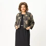 Жакет прямого кроя с застежкой на петли и пуговицы, с втачным рукавом. Линия плеча спущена, по горловине отложной воротник. По переду накладные карманы. Кокетка из кружева по переду и спинке добавляет романтичности и легкости.