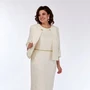 Элегантный женский костюм в цвете шампань — идеальный выбор для торжественных мероприятий. Комплект состоит из утончённого жакета и платья-футляра. Жакет обладает длиной 55 см и рукавами длиной 45 см, закрывающимися на крючок. Модель дополнена эффектными золотистыми пуговицами на передней панели, что добавляет роскошности образу. Платье выполнено в длину 98 см с короткими рукавами (18 см). Элегантный крой подчеркивается скрытой молнией на спинке и небольшим разрезом-шлицей на подоле длиной 20 см, что облегчает движение. Платье полностью на подкладке из трикотажа, что обеспечивает комфорт при носке. Дизайн платья дополняется тонким принтом в виде мелких квадратиков, расставляющих акценты и добавляющих изысканности. Этот костюм идеально подойдёт для деловых встреч, официальных событий или церемоний, гарантируя не только стильный, но и комфортный образ.