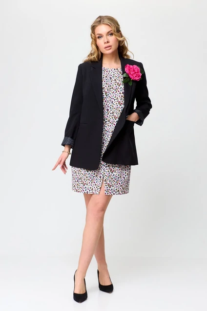 Комплект жакет и платье. Черный жакет с ярким декором и mini-платье в мелком дизайне.