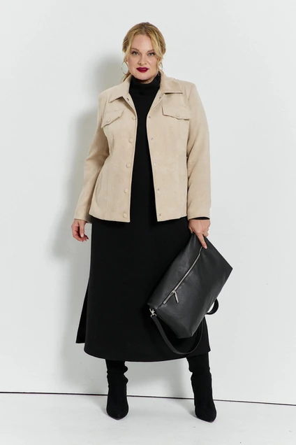 Жакет на подкладке, с отложным воротником, застёжкой на пуговицы и с декоративными клапанами .