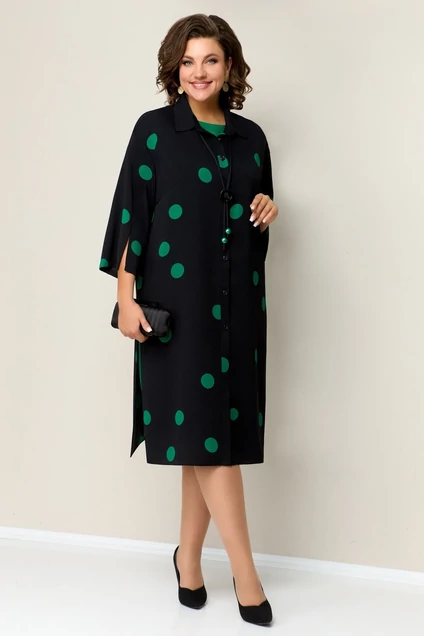 Костюм с платьем 1326 черно-изумрудный VOLNA