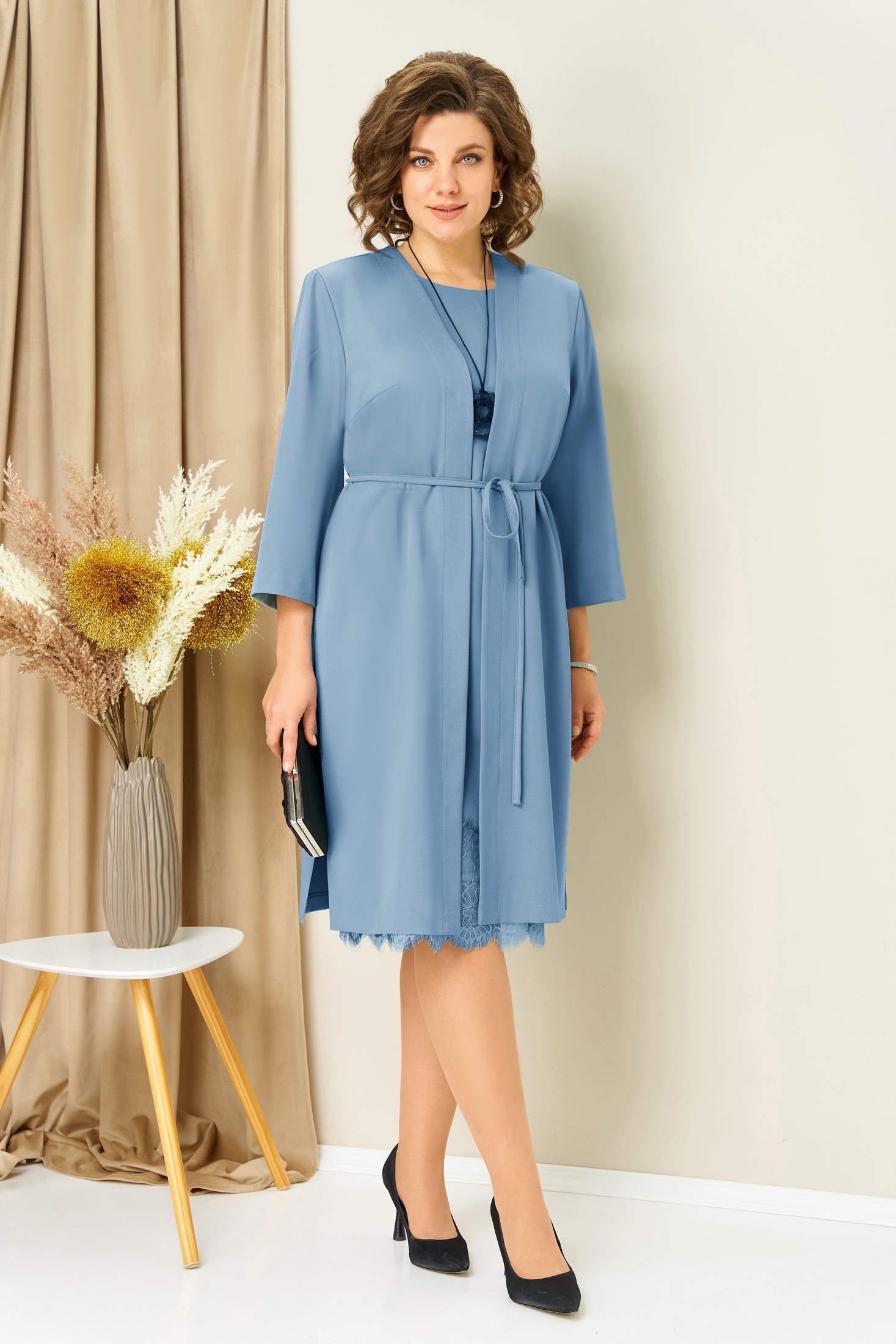 Костюм с платьем 1459 голубой VOLNA – это идеальный выбор для стильного образа. Коллекция бренда VOLNA сочетает в себе элегантность и функциональность. Платье-футляр прямого силуэта выполнено из полиэстера, вискозы и спандекса, что обеспечивает комфорт и легкость в носке. Изюминкой комплекта является удлиненный жакет с глубокими разрезами по бокам и длиной рукава 50 см. Романтичный кружевной низ платья, дополняет узкий пояс из текстиля. Подвеска в комплекте придает дополнительный шарм. Костюм выполнен в голубом цвете, что делает его подходящим для вечерних мероприятий в теплое время года. Длина жакета и платья по центру спинки составляет 103 см, обеспечивая идеальную посадку.