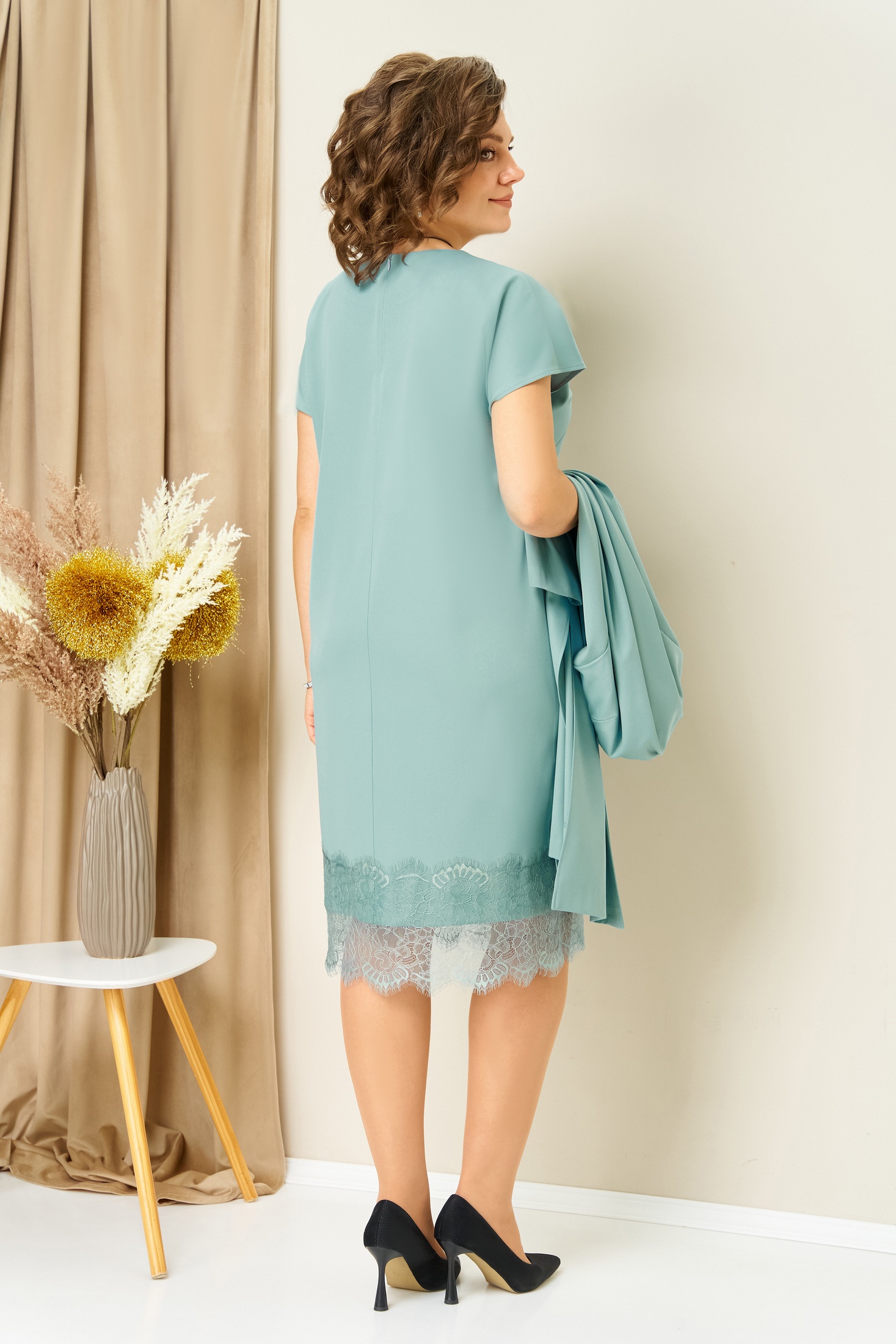 Костюм с платьем 1459 светло-мятный VOLNA - это изящный комплект, который сочетает в себе нежные оттенки и безупречный стиль. Коллекция бренда VOLNA отличается высоким уровнем комфорта за счет смесового материала, включающего полиэстер, вискозу и спандекс. Удлиненный жакет с боковыми разрезами и длиной по спинке 103 см добавляет легкости и динамичности образу. Платье-футляр с кружевным подолом и длиной 103 см создает женственный силуэт. Спущенный короткий рукав длиной 50 см и узкий текстильный пояс завершают утонченный образ. Идеальное решение для прохладных сезонов и стильных офисных образов, выполненное в светло-мятном цвете, подчеркнет вашу индивидуальность.