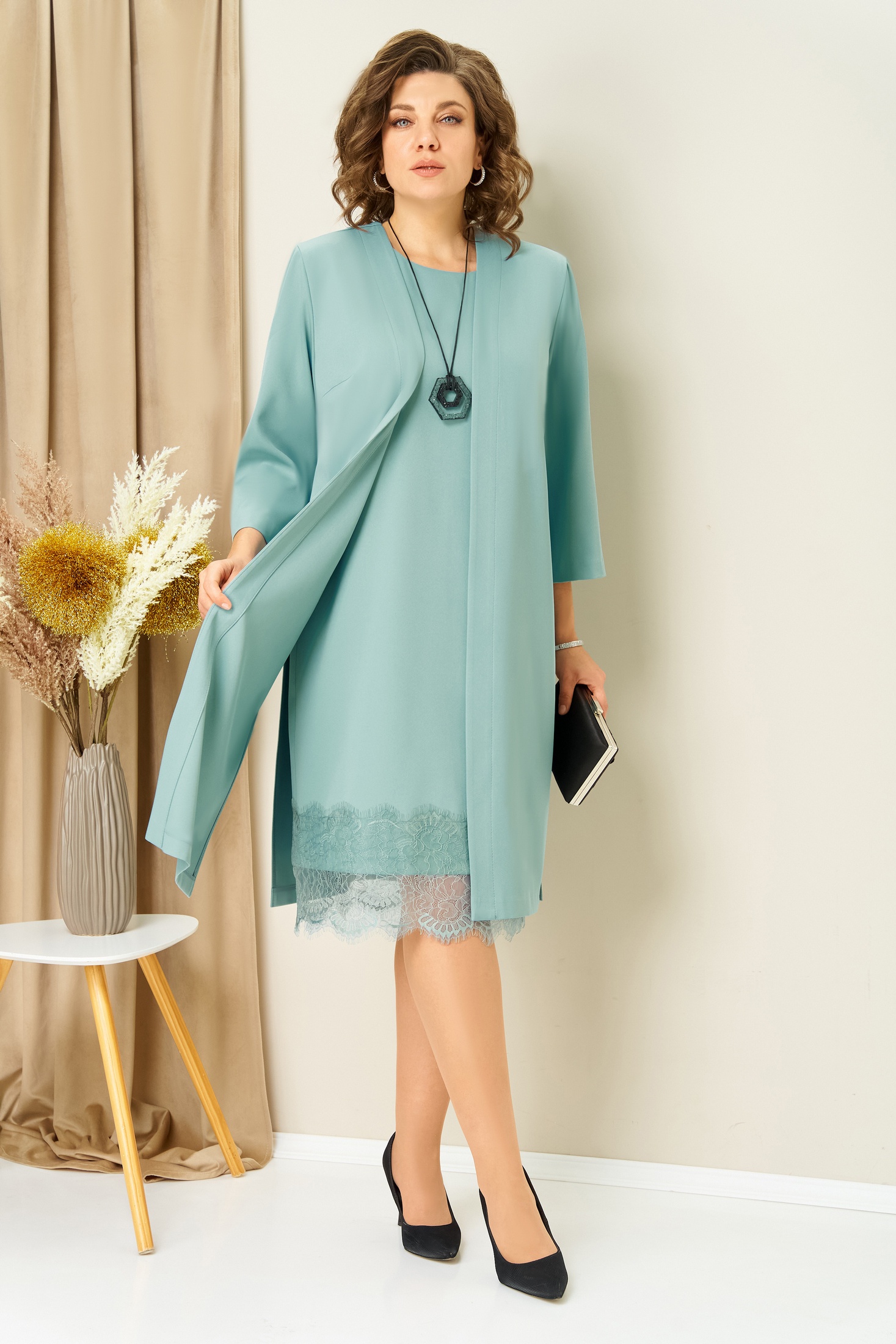 Костюм с платьем 1459 светло-мятный VOLNA