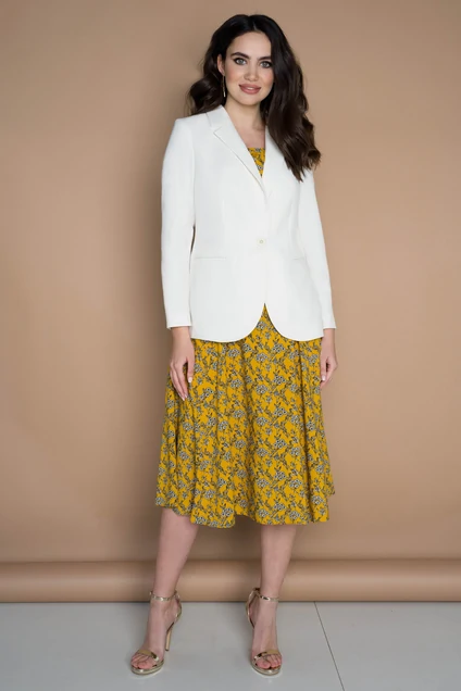 Средняя длина жакета по среднему шву спинки - 68,0 см, Средняя длина рукава жакета - 61,5 см. Средняя длина платья по среднему шву спинки - 110,0 см, средняя длина рукава платья - 20,5 см