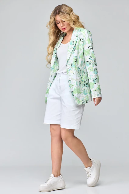 Эффектный женский комплект из классического жакета с шортами-бермудами - идеальный вариант для жаркой погоды. Комплект изготовлен из хлопковой ткани. Можно сочетать как с кроссовками, а также обувью на каблуке.
