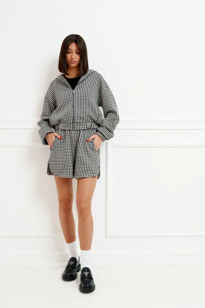 Комплект выполнен из текстильного полотна состоит из бомбера и шорт. Уютный стильный комплект. Каждая деталь комплекта позволит Вам создавать новые образы. Бомбер дополнит любой образ для повседневного стиля.