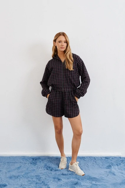 Комплект выполнен из текстильного полотна состоит из бомбера и шорт. Уютный стильный комплект. Каждая деталь комплекта позволит Вам создавать новые образы. Бомбер дополнит любой образ для повседневного стиля.
