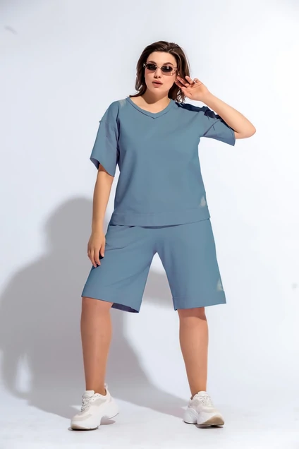 Комплект женский полуприлегающего силуэта, состоящий из блузы и шорт. Если вы хотите летом чувствовать себя легко и свободно, тогда это именно то, что вам нужно. Потрясающе удобный, мягкий и трендовый костюмчик, который должен быть в гардеробе любой модницы! Блуза необычного кроя с разрезными деталями по спинке и рукавам. Шорты свободного прилегания, дополнены карманами «Хулиганами». Верх шорт обработан широким поясом с эластичной резинкой. По переду выполнен отделочный шов, который создаёт вид заутюженной стрелки, как на классических брюках. По низу блузы и шорт, выполнен широкий отворот. Некоторые детали модели, вручную расписаны жемчужной краской. Это придаёт индивидуальность и неповторимость вашему образу.