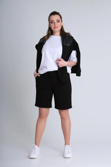 Футболка универсальная повседневная , свободного силуэта, оверсайз. Длина по спинке 77 см. Длина рукава от горловины 42 см. Трикотажные шорты, по талии резинка и шнурок. На передних половинках карманы хулиганы. Длина по боковому шву 55 см. Длина по шаговому шву 28 см. Свитшот со спущенной линией плеча, свободного силуэта(ОВЕРСАЙЗ). Низ изделия и манжеты рукава выполнены из основного полотна. Длина по переду 67 см. Длина по спинке 81 см. Длина рукава от горловины 76 см.