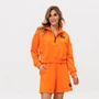 Комплект: джемпер + шорты. Комплект выполнен из трикотажного полотна. Джемпер свободного силуэта, длиной чуть ниже линии талии. Спереди накладной карман. Застежка на молнию спереди от кармана до верха. Спинка цельная. Воротник-стойка. Плечевой шов спущен. Низ рукава на манжете. Джемпер декорирован нашивкой. Шорты свободного покроя, на притачном поясе с эластичной тесьмой. Спереди боковые карманы с наклонным входом. Шорты декорированы нашивкой.