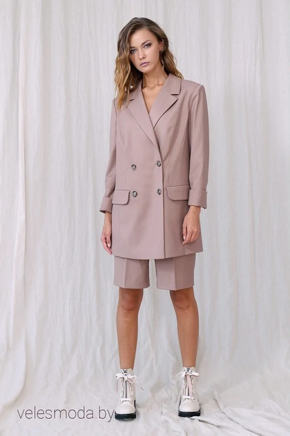 Подсказываем: шорты-бермуды - хит осеннего сезона! Это отличная альтернатива юбке и брюкам для стильных и деловых женщин, кто отличается любовью к строгим вещам. Никаких серых и черных цветов, только пастельные оттенки. Строгий костюм с бермудами - это то, что стилист прописал. Классический двубортный пиджак свободного кроя с втачным рукавом. На полочках - прорезные карманы с клапаном, рукав двухшовный с открытой шлицей и декоративными пуговицами. Шорты - бермуды высокой посадки, с эластичным поясом на спинке, классическим спереди, наклонными боковыми карманами. Длина жакета около 82 см. Длина рукава 62 см. Длина бермуд около 48 см.