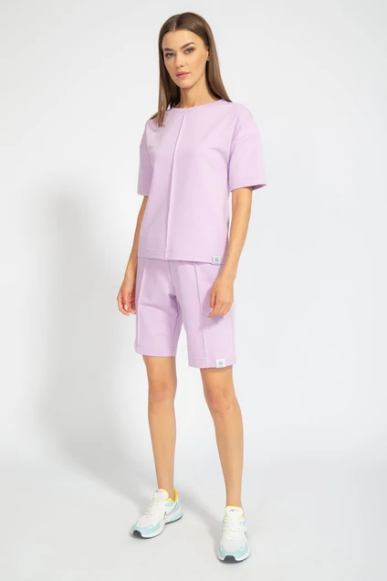 Костюм с шортами средней посадки с отделкой в виде канта по деталям переда и карманами в боковых швах. Джемпер прилегающего силуэта. Ткань френч терри (2-х ниточный футер) с невероятно нежным внутренним слоем, качество Пенье, плотность 265 г.м2