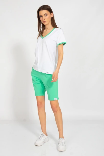 Костюм. Джемпер с V-образным вырезом и отделкой воротника и манжет. Шорты средней посадки с отделкой в виде канта по деталям переда и карманами в боковых швах. Ткань 2-х ниточный футер с изнанкой из хлопка, качество Пенье, плотность 265 г.м2