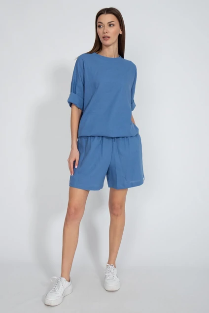Костюм состоящий из шорт льняных свободного кроя с карманами в боковых швах и джемпера свободного кроя. С приспущенным рукавом и кулиской по низу изделия с возможностью регулировки ширины низа. Ткань лен. Отлично сочетается с брюками модели 4076, рубашкой 4073, рубашкой 4081, джоггерами 4082. Рост 170