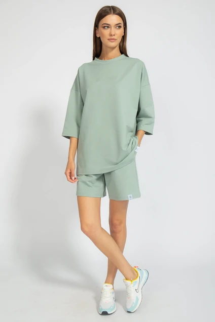 Костюм оверсайз с классическими прямыми шортами средней посадки с карманами в боковых швах. Свитшот оверсайз с приспущенным рукавом Ткань френч терри (2-х ниточный футер) с невероятно нежным внутренним слоем, качество Пенье, плотность 265 г.м2
