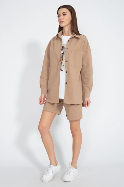 Костюм джинсовый свободного кроя, сочетает в себе офисную строгость и свободный спортивный стиль. Состоит из рубашки и шорт. Ткань Тиффани одна из лучших джинсовых тканей по своим характеристикам. Плотность джинса и нежность велюра обеспечивают невероятный комфорт.
