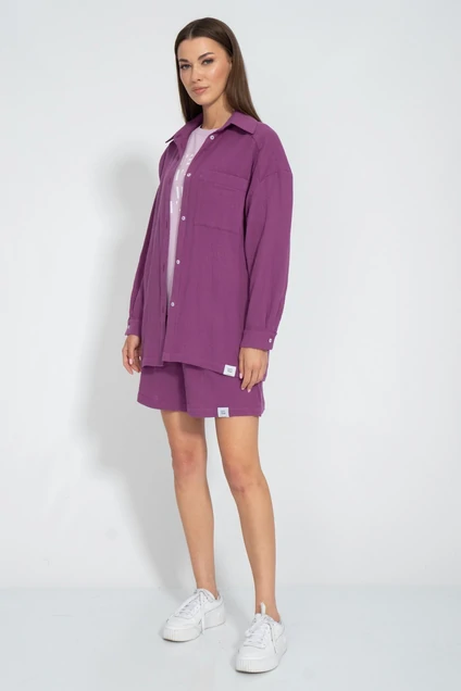 Костюм состоящий из рубашки и шорт. Нежная натуральная хлопковая ткань - муслин. Шорты свободного кроя с карманами в боковых швах. Рубашка свободного кроя со спущенными рукавами и накладным карманом. Ткань муслин. Рост 170.