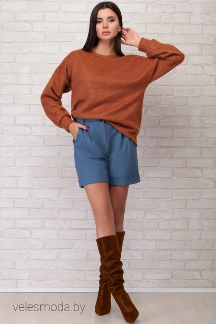 Джемпер свободного силуэта со спущенным рукавом без плечевых накладок. Перед длиннее спинки. Рукав присобран на манжету. Длина изделия спинки 66 см, длина рукава 60см. Состав полиэстер 70%, вискоза 25%, спандекс 5%.