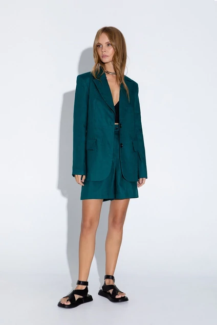 Льняной костюм- двойка из жакета и мини-шорт
