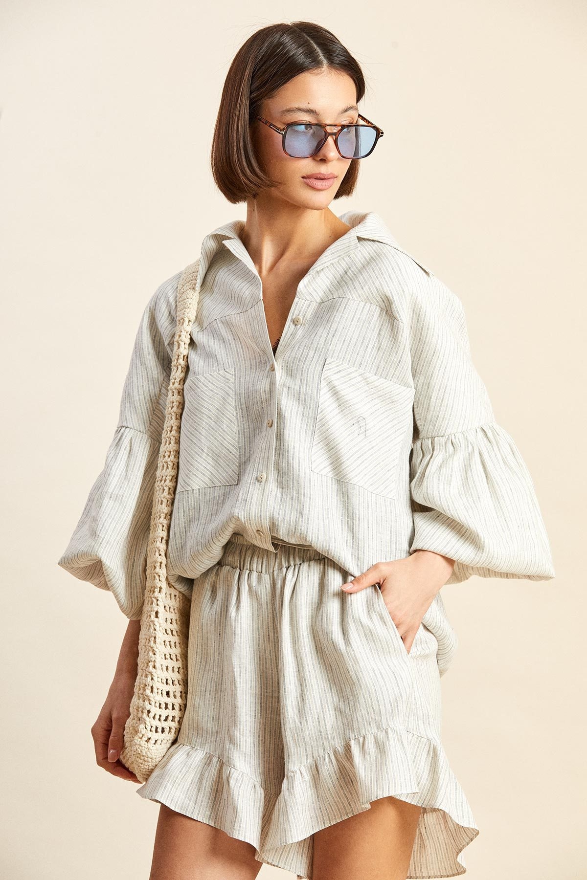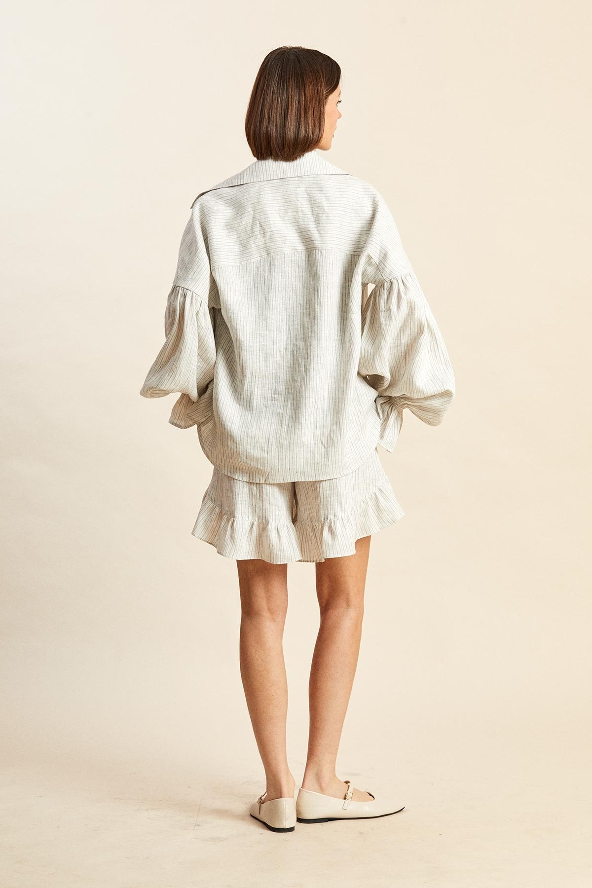 - рукава широкие, со сборкой от проймы, книзу заужаются и собираются на 5 рядов строчек с эластичной нитью, оставляя по низу расклешенные манжеты;