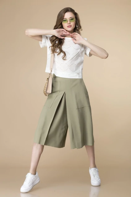 Костюм с шортами 2-1971 белый + хаки Romanovich style