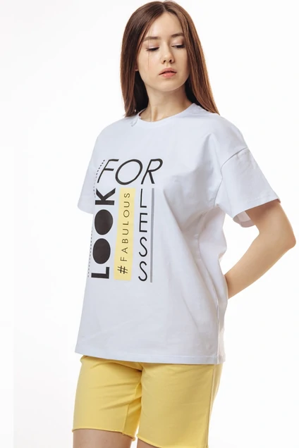 Легкий, свободный летний костюм (жилет+шорты), базовая женская футболка прямого кроя с круглым вырезом, коротким рукавом с печатью - трендовая модель. Мягкий дышащий материал, удобное лекало, эргономичный крой. Костюм выполнен из плотного, мягкого, приятного к телу хлопка, не просвечивает и сохраняет форму. Печать на футболке с нейтральным смыслом "Поразительно искать меньше". Даже после множества стирок цвет изделия сохраняется. РЕКОМЕНДАЦИИ ПО УХОДУ: Стирать с вещами похожего цвета и вынимать сразу после стирки. Гладить с изнаночной стороны. Обязательно ознакомьтесь с инструкцией на вшивной ленте. Важная информация! Фото товара сделано при искусственном освещении студии. При естественном освещении цвета могут иметь другие оттенки.ТЗ698ЛХ - Футболка полуприлегающего силуэта изготовлена из полотна в состав, которого входит 92% хлопка и 8% эластана. Горловина круглая, обработана притачной бейкой. Рукав втачной, короткий. По переду джемпера нанесена "печать". Футболку можно сочетать с брюками или джинсами.