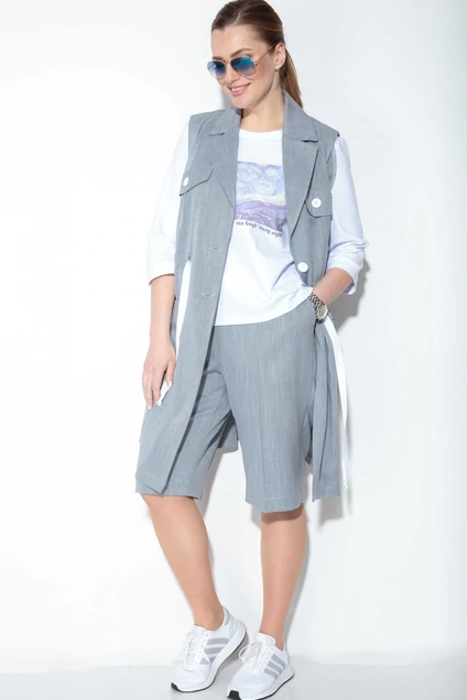 Идеальный вариант летнего комплекта, состоящего из жилета, майки и шорт. Жилет и шорты выполнены из летней костюмной ткани. Майка из вискозного полотна. Печать на майте может отличаться от фото.