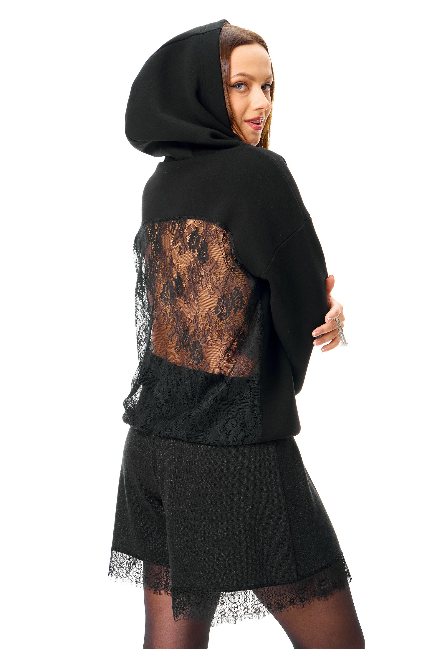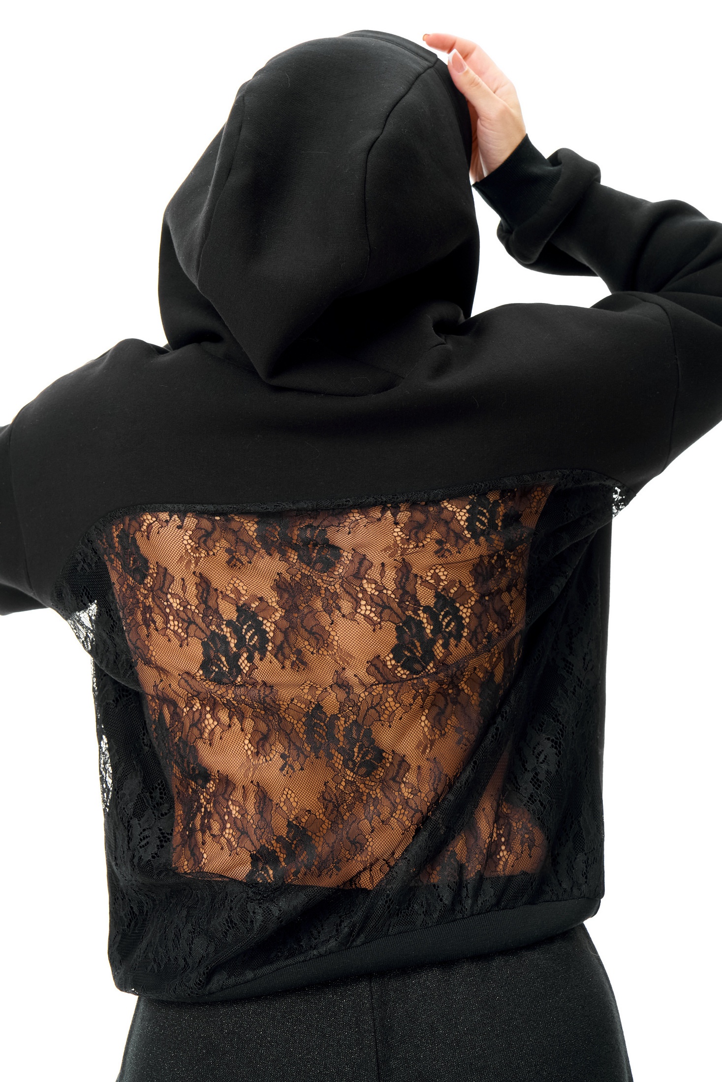 Сочетание нежности и дерзости в одной модели. Это не просто худи, а настоящий арт-объект для вашего гардероба. Мягкий и уютный крой спереди идеально контрастирует с соблазнительной спинкой, украшенной ажурным кружевом.