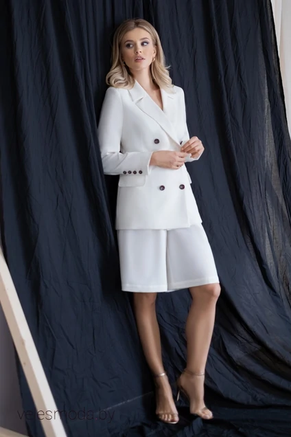 Костюм с шортами -это отличная замена брючному костюму в жаркую погоду. Красиво, всегда уместно, универсально - все это про жакет с шортами. Такой костюм можно носить и на работу, и на свидание, и на встречу с друзьями. Костюм женский двухпредметный, состоящий из жакета полуприлегающего силуэта и широких шорт. Костюм предназначен для повседневной носки.