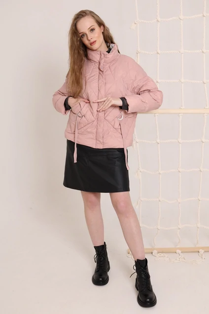 Короткий молдёжный стеганый крдиган на молнии по переду. Необычные накладные карманы и стропы добовняют модели динамичности.