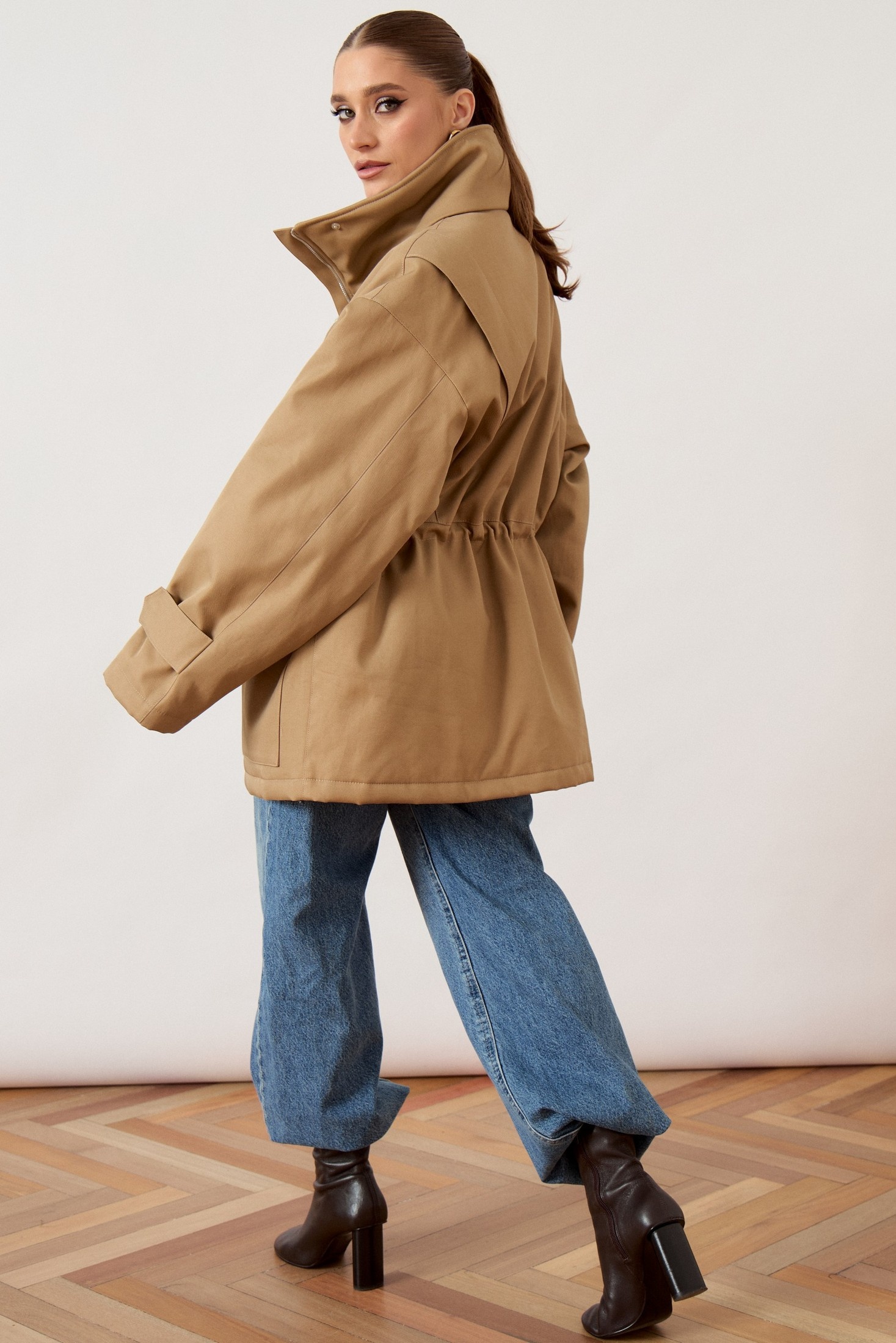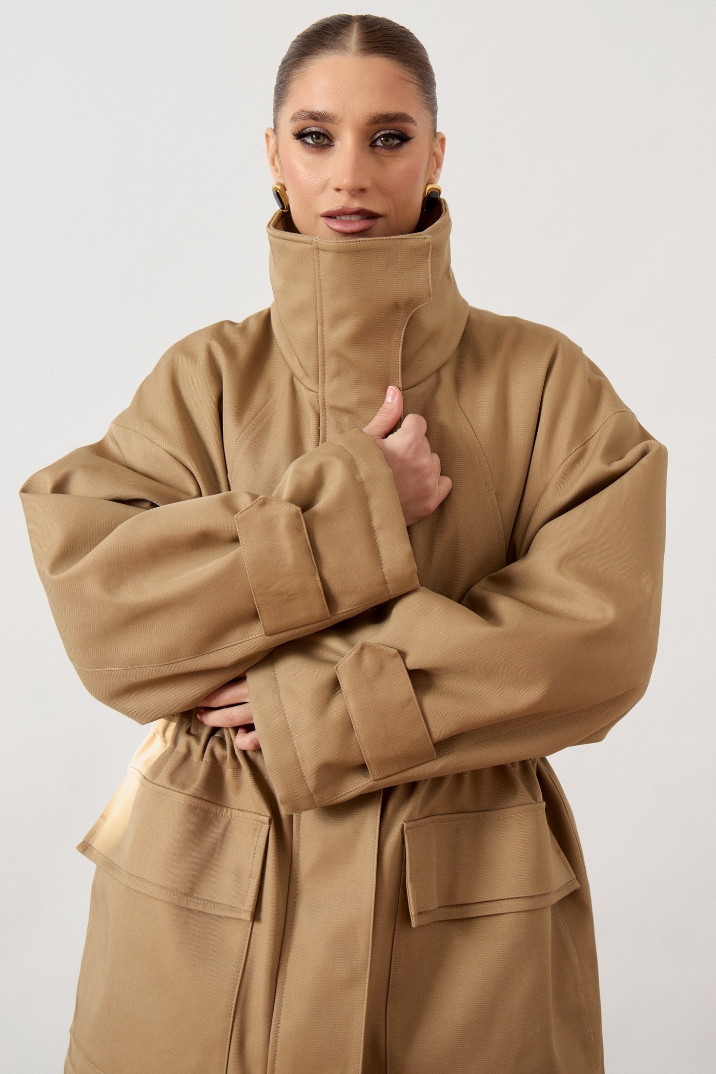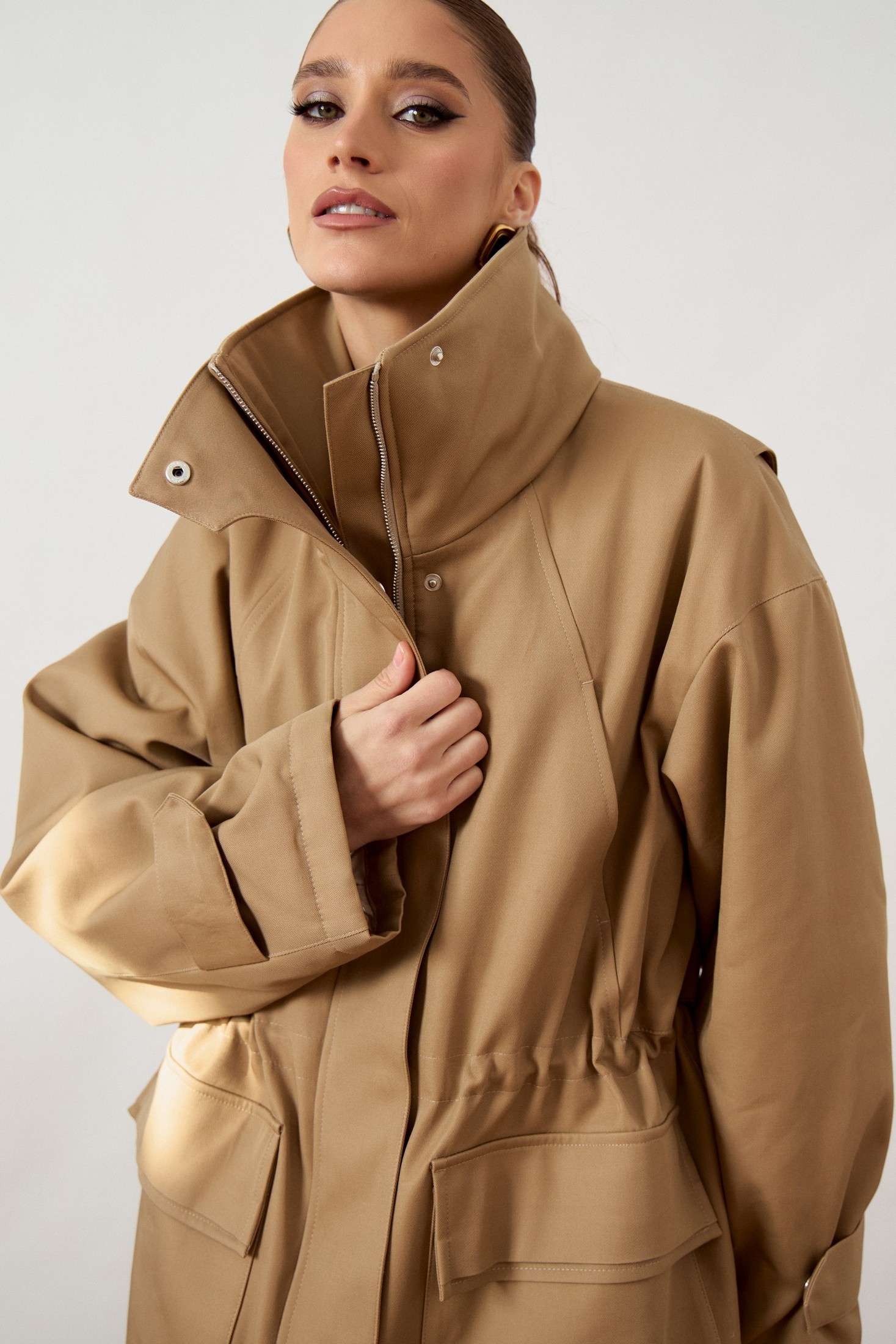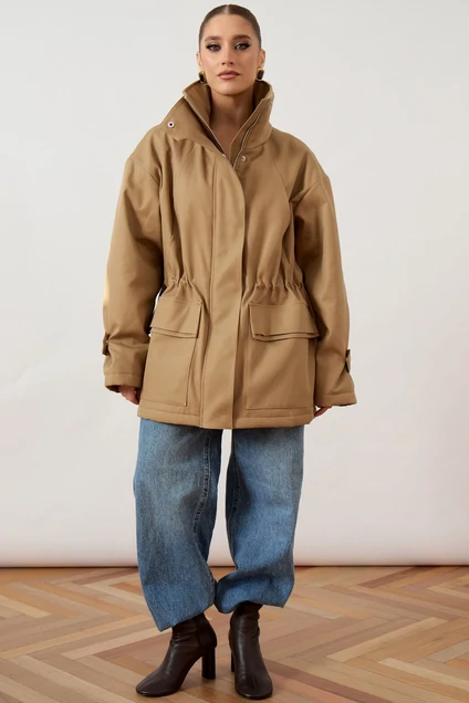 Куртка 3480-1 ATTIKA сочетает в себе удобство и стиль. Коллекция бренда ATTIKA предлагает комфортную верхнюю одежду прямого силуэта. Изготовленная из плотной ткани с высококачественным составом хлопка и вискозы, она обладает легкой эластичностью и обеспечивает комфорт при носке. Высокий воротник-стойка и центральная застежка на молнию с широкой ветрозащитной планкой защищают от непогоды. Свободный рукав с покроем реглан и декоративные паты на кнопках позволяют регулировать объем. Эластичная кулиска на талии и объемные накладные карманы добавляют функциональности. Куртка идеально подходит для осенне-зимнего сезона благодаря своей теплоизоляции. Универсальный бежевый цвет дополнит любой гардероб.
