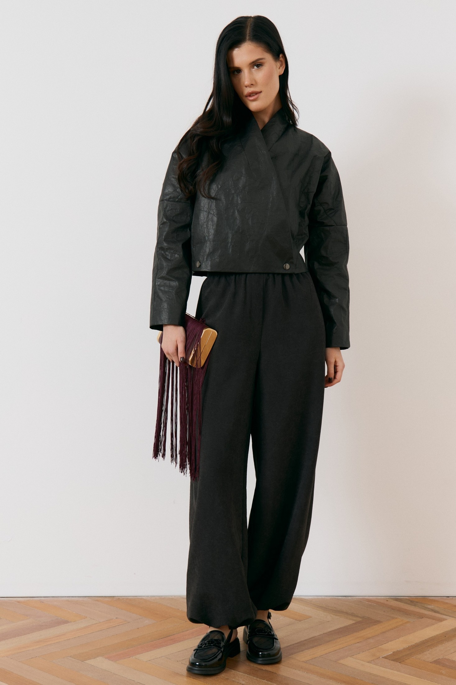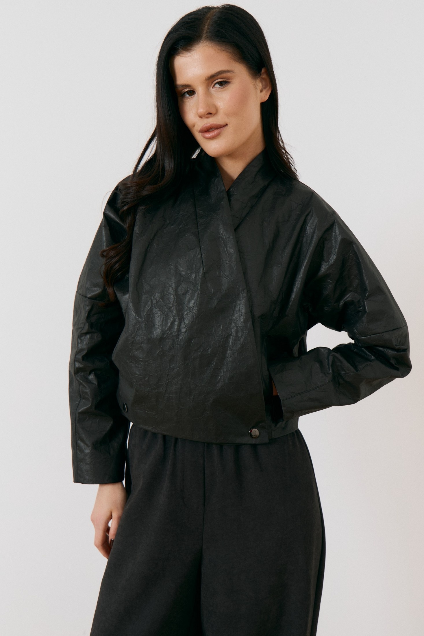 Куртка 3481-2 ATTIKA — это стильный элемент гардероба от бренда ATTIKA. Изготовлена из кожи с эффектом 'жатки', что добавляет особый шарм и оригинальность. Коллекция бренда ATTIKA предлагает куртку с укороченной длиной и прямым силуэтом, что делает её подходящей для любого повседневного образа. Асимметричное застёгивание на металлические кнопки и воротник-стойка подчёркивают уникальный дизайн. Широкие спущенные рукава добавляют комфорта, а подкладка обеспечивает уют в прохладное время года. Куртка выполнена в классическом чёрном цвете, что делает её универсальным выбором на демисезонный период.
