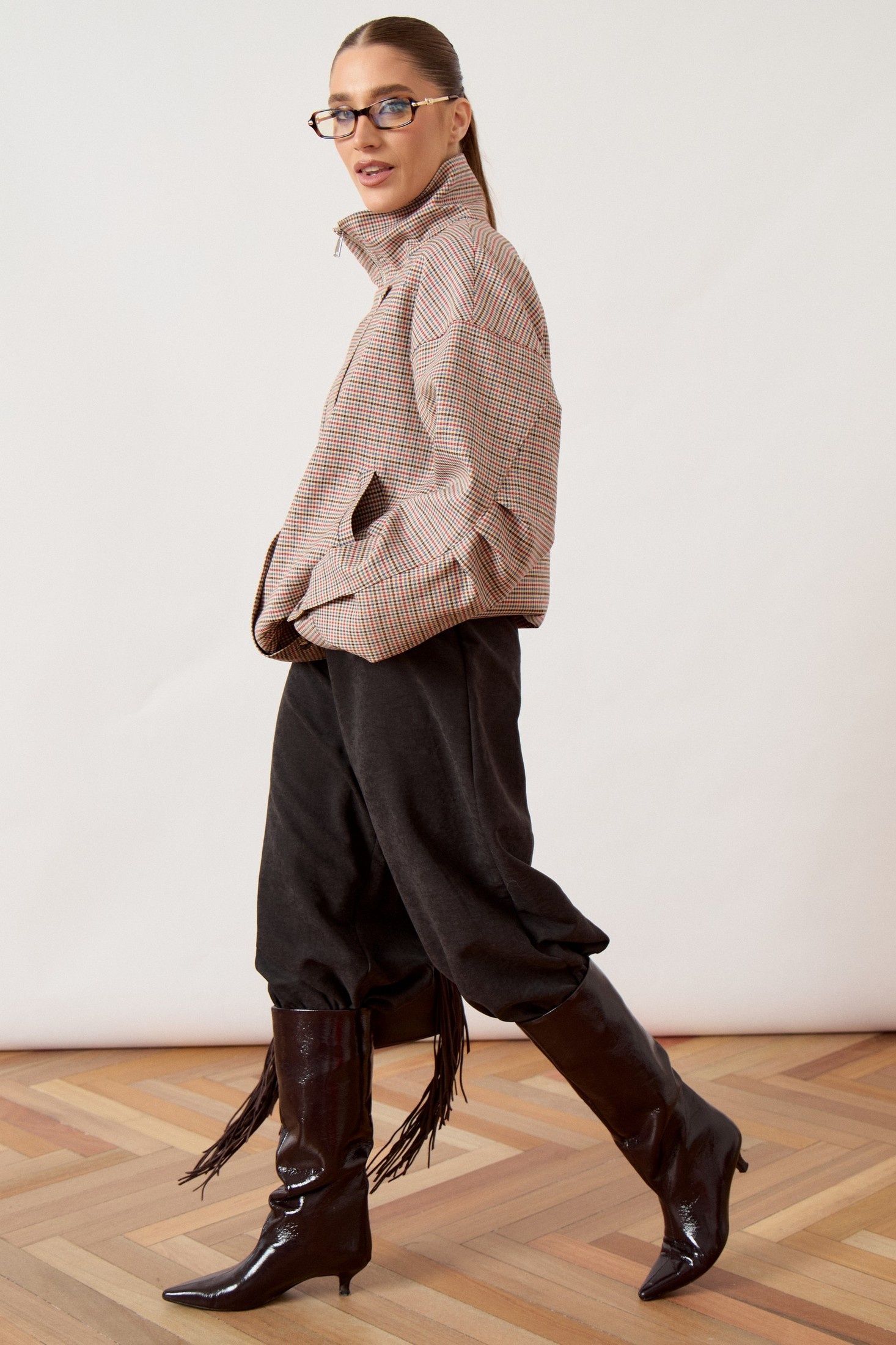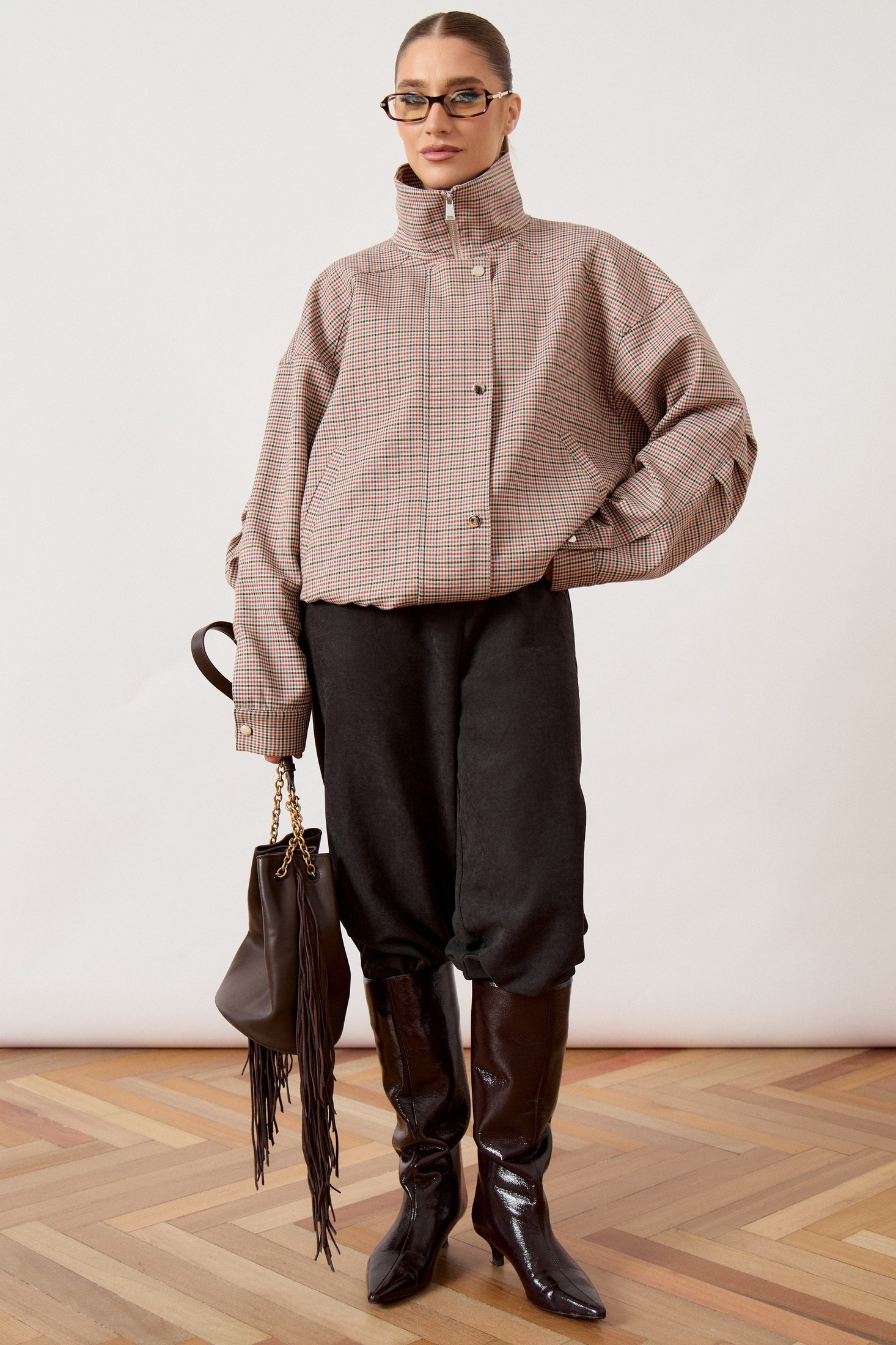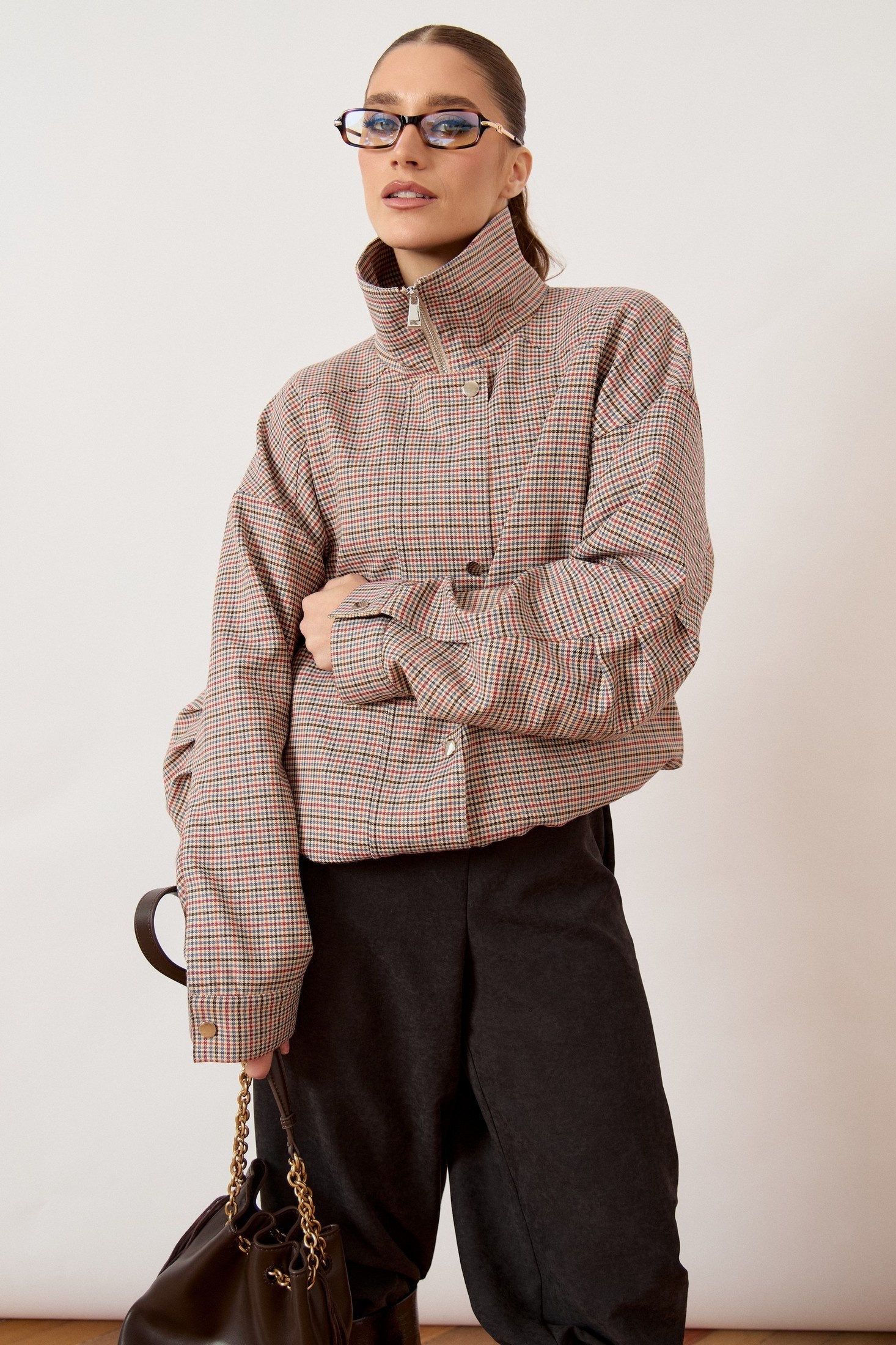 Куртка 3483-1 ATTIKA — стильное решение для современных женщин. Коллекция бренда ATTIKA предлагает куртку свободного силуэта, выполненную из плотной ткани с мелким клетчатым узором. Материалы сочетают полиэстер и вискозу, обеспечивая прочность и комфорт. Высокий воротник-стойка и спущенная линия плеча добавляют изысканности. Центральная комбинированная застежка с ветрозащитной планкой на кнопках создает надежную защиту от ветра. Прорезные карманы обеспечивают удобство, а широкий втачной рукав с притачной манжетой завершает образ. Куртка отлично подходит для весенне-осеннего сезона благодаря эластичному шнуру, обеспечивающему регулировку объема. Цвет изделия богатый и выразительный, а фасон оверсайз делает его идеальным для повседневной носки.
