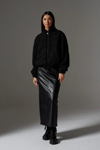 Куртка свободного кроя с эластичным низом выполнена из искусственного меха кудрявой текстуры насыщенного зелёного цвета. Практичная, стильная, удобная куртка в Вашем образе идеально дополнит роскошные природные краски осени. Характеристик: свободный крой, подкладка, горловина стойка, застежка центральная - молния, рукав спущен, низ рукава и низ изделия эластичный. Длина изделия 57, длина рукава от края горловины 58 см.