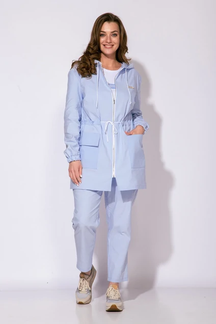Куртка женская свободного силуэта,выполнена из хлопковой ткани без подкладки,с накладными карманами на полочке и кулиской на талии. Рукав втачной с притачным манжетом на резинке по низу.Застежка молния.Длина куртки по спинке 80см.