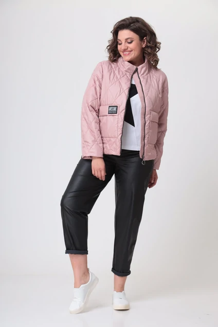 Куртка женская прямого силуэта утепленная на подкладке. Куртка с центральной бортовой застежкой на тесьму-молнию. На передних частях обработаны накладные карманы с боковым входом и имитацией отворота. Рукава одношовные, втачные с локтевым швом. Горловина обработана воротником - стойка.