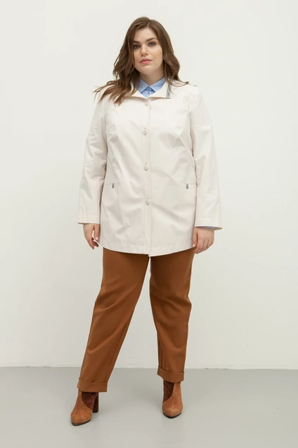 Куртка женская из ткани плащевой группы, полуприлегающего силуэта,однобортная с притачными планками и застёжкой на 4 петли и пуговицы.