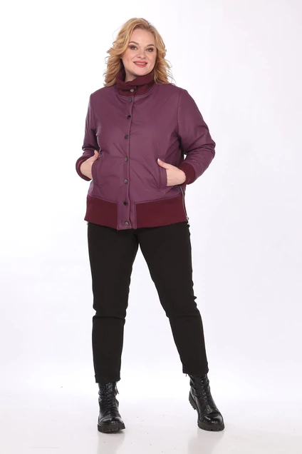 Полочка с прорезными внутренними карманами с листочкой. Застежка центральная на кнопки. Воротник выполнен из плотного трикотажа в виде высокой стойки на кнопках.