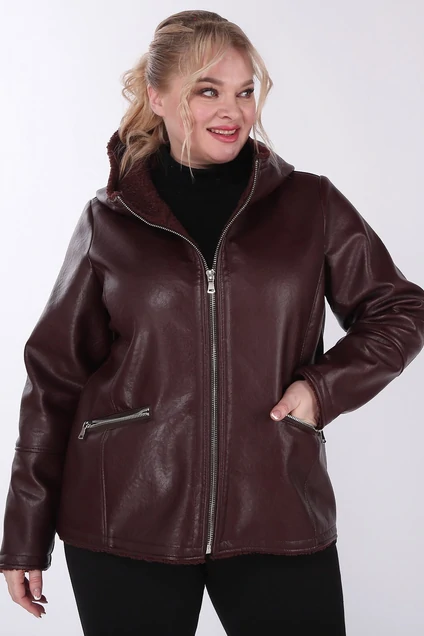 По полочке обработаны рельефы, карманы разрезные функциональные на молнии. Застежка дубленки центральная на металлическую молнию. Горловина - стойка, переходящая в капюшон. Спинка со средним швом. Рукав втачной одношовный, верхняя частьсостоит из двух частей. Низ рукава с подрезом. В модели есть прибавка на верхнюю одежду.