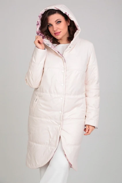 Куртка женская- на утеплителе (HOOPON),свободного силуэта,двусторонняя.Одна сторона простёгана поперечными строчками.Рукав втачной,может быть с отворотом и без. С капюшоном. длина по спинке 102 см . , длина рукава 67 см.