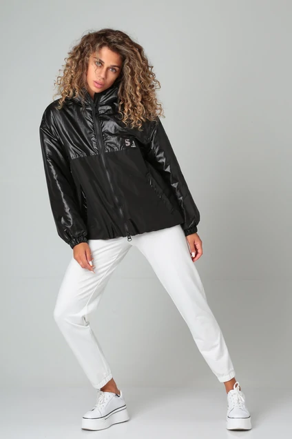 Комбинированная утепленная куртка с капюшоном . По полочкам прорезные карманы, Рукав втачной на манжете из основной ткани,Низ на регулируемой кулисе. Застежка молния. Материал верха -комбинированный из плащевки матовой и плащевки с напылением. Подкладка -полиэстр. Утеплитель FeelGood 200г на 1м . Кв. Демисизон. Температурный режим +5 - -10 Длина 66 см, рукав от горловины 72 см.