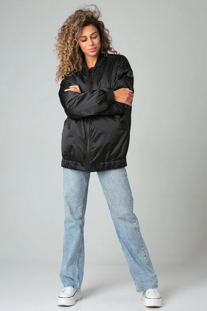 Кутртка удлиненная в стиле бомбер. Элатичные трикотажные манжеты,воротник. Низ куртки -притачной пояс на эластичной ленте.Два прорезных кармана по полочке на кнопках, сервисный карман на рукаве. Рукав втачной на спущенной пройме, Застежка молния, Материал верха водооталкивающий ветрозащитный , подкладка -полиэстр.Утеплитель FeelGood 200г на 1м . Кв. Демисизон.Темературный режим +5 - -10 Длина 75 см, рукав от горловины 77 см.